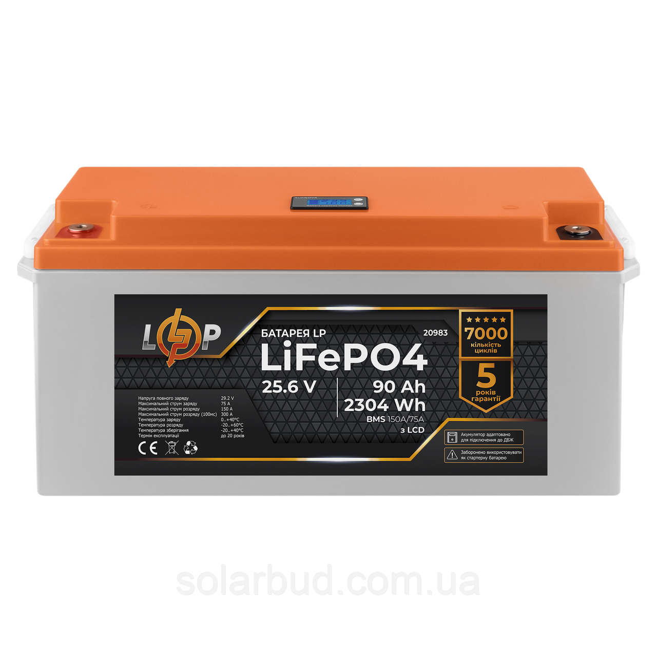 Акумулятор LP LiFePO4 для ДБЖ LCD 24V (25,6V) - 90 Ah (2304Wh) (BMS 150A/75А) пластик
