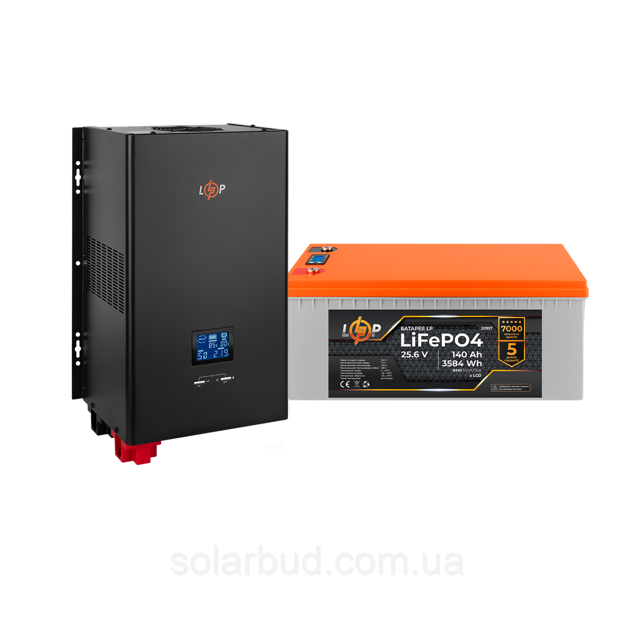 Комплект резервного живлення LogicPower ДБЖ з правильною синусоїдою 24V LPE-W-PSW-3600VA+ (2500Вт) 1-50A + Акумулятор LP LiFePO4 LCD 24V (25,6V) - 140 Ah (3584Wh) (BMS 150A/75A) пластик розроблено та введено в експлуатацію для забезпечення безперебійного живлення електричних газових котлів, систем відеоспостереження, комп'ютерної техніки та інших пристроїв, що працюють у режимі 24/7/365. Комплект може бути використаний як джерело безперебійного живлення для бомбосховища.
